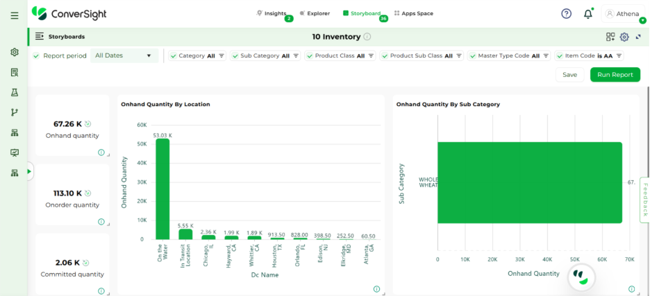 - Athena AI Employee: The natural language AI assistant, Athena, allows employees to ask questions and receive insights in real time. Users can quickly analyze trends, generate reports, and forecast demand without relying on specialized analytics teams.